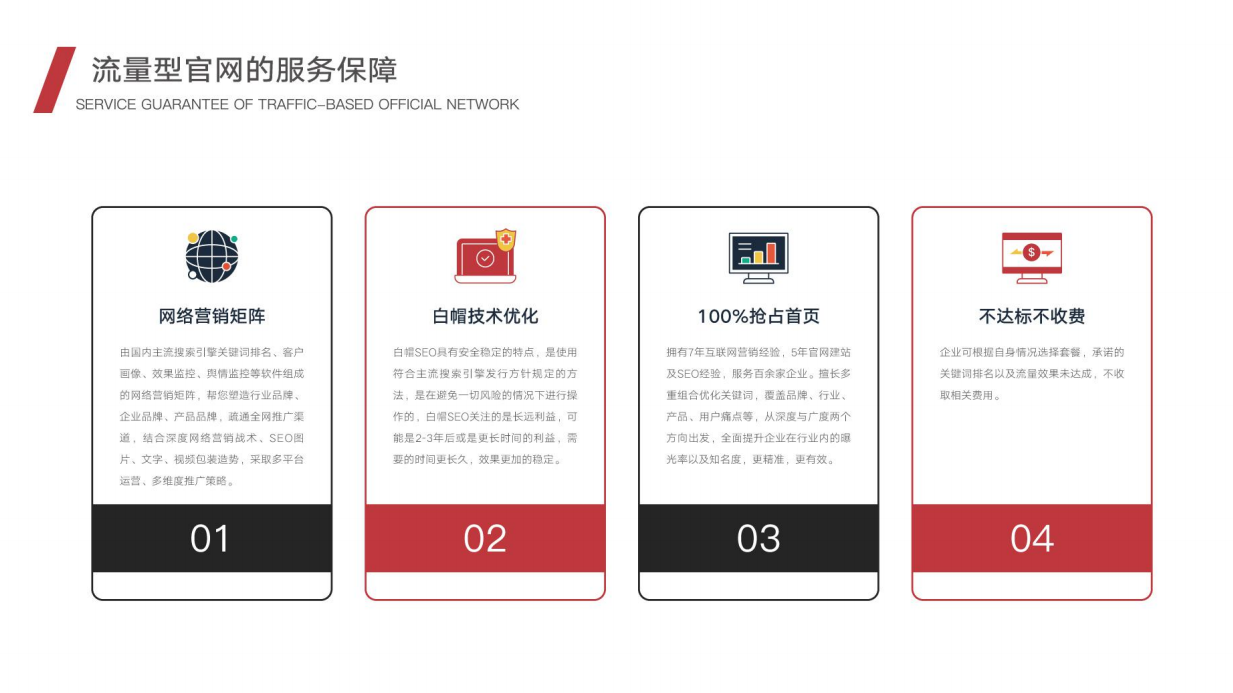 企业可根据自身情况选择套餐,承诺的关键词排名以及流量效果未达成,不收取相关费用。