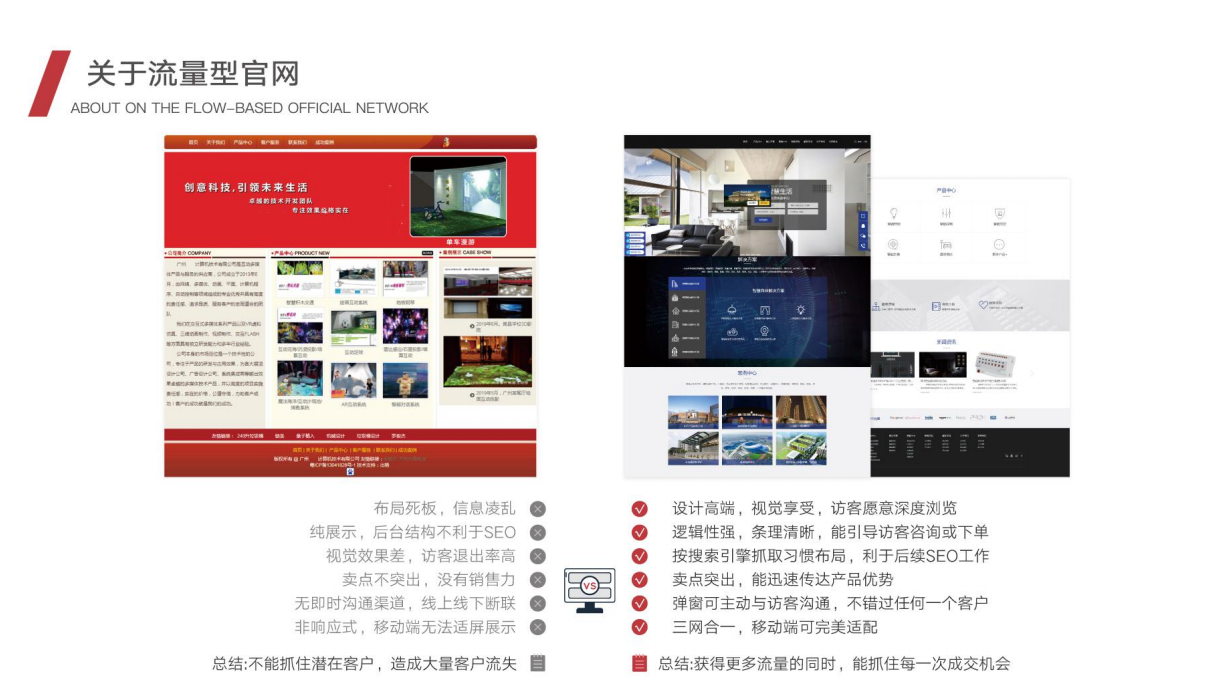 流量型官网迎合了搜索引擎优化需要,可以提升网站权重,获得更好的搜索排名,从而提升同行竞争力,增加曝光量。