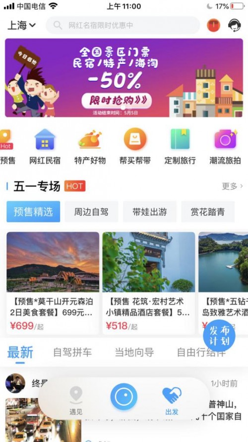 为了鼓励年轻人假期出行,现在,在墨鱼旅行APP或公众号小程序预定门票线路、民宿套餐等,还能获得限时折扣,低至五折。