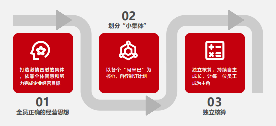 阿米巴经营管理模式把企业划分成一个个独立核算、自主经营的小集体,并引入外部市场竞争机制实现内部交易和竞争,每个阿米巴成员都对自己组织的效益负责,所以每个人都会自主自发的参与经营努力提高组织效益,每个小组织可以通过提高销售、减少费用、缩短时间来提高自己的效率,甚至到人效。