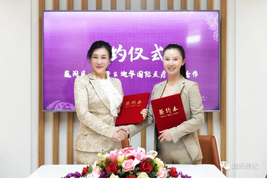 与迦华国际医疗创始人兼总经理曹清华(右)云签约现场