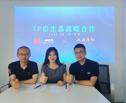 2020年6月10日北京一未文化正式联手大道造物(故宫多款文创产品及多个国礼研发团队),历经一年落地,双方正式签署了5000万衍生品的战略合作协议。