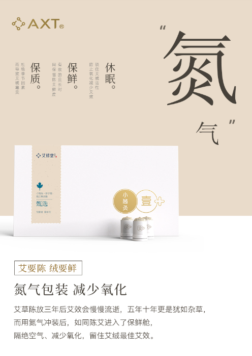 为了保留艾绒的最佳艾效,艾修堂小筒灸壹+创新应用了氮气充装技术,让陈艾如同进入了“保鲜舱”,不仅可以有效防止艾绒氧化,锁住艾绒活性,长时间保留陈艾的鲜度,同时也杜绝了因为季节因素而导致艾绒霉变。通过传统+科技的创新与进步,真正带来高品质的艾灸养生体验。