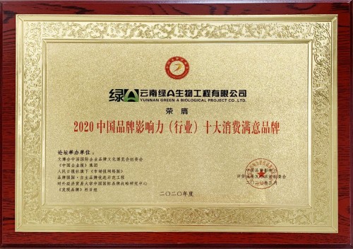 近日,云南绿A生物工程有限公司从众多竞争对手中脱颖而出,在2020(第七届)中国品牌影响力评价成果发布活动中荣膺“2020中国品牌影响力十大消费满意品牌”奖项。从此,绿A的奖杯展列柜中又多了一份沉甸甸的荣誉。