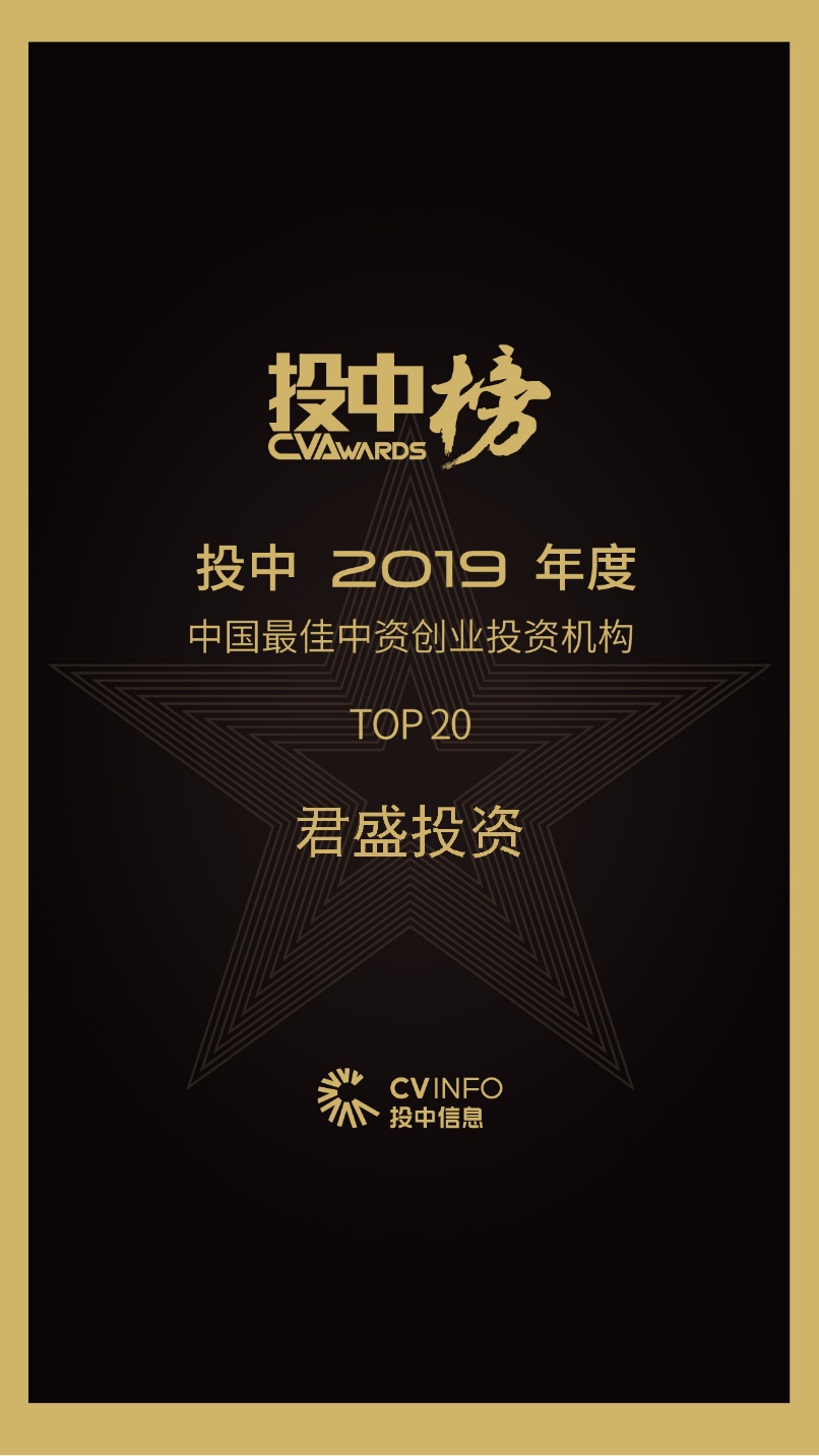 “投中2019年度中国最佳中资创业投资机构TOP20”
