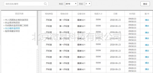 视频存储管理:实现按项目时间和项目编号自动创建存档目录,形成直观的存档目录表,系统支持按照项目名称、项目编号、日期、标室等不同维度查询。