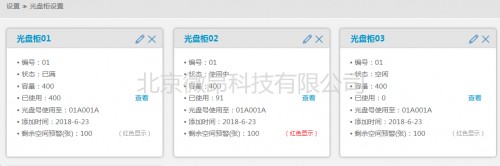 智能光盘柜管理(扩展功能):支持光盘柜信息维护、支持智能扫码入库,可快速检索光盘存放位置;光盘柜支持离线异地部署,支持级联扩展。需配备光盘柜实现扩展功能。