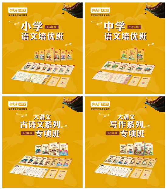 宋艳敏表示,除了完善课程体系,在教辅教材上御夫子大语文也进行了全新升级。新的教辅教材由课本、课后巩固、课堂积累、课堂检测、知识挂图等七件套构成。