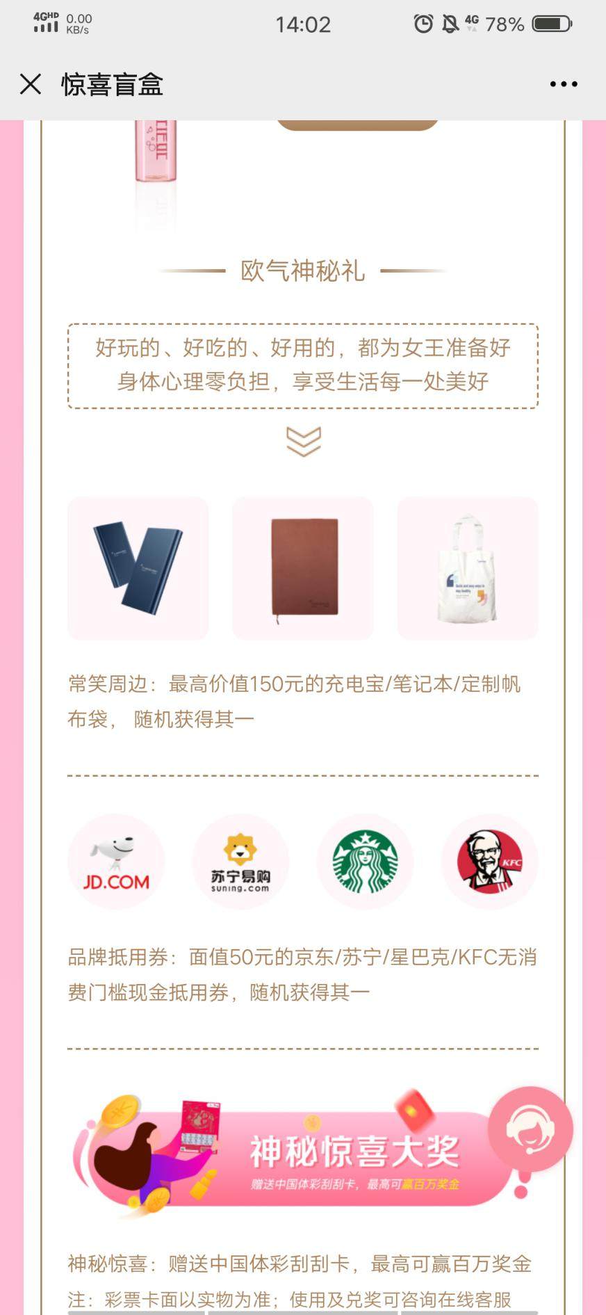 将会随机获得面值50元的京东/苏宁/星巴克/KFC无消费门槛现金抵用券其中一张。