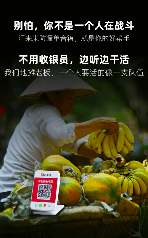 有了汇来米防漏单音箱,就能边听边干活,节省老板时间,顾客自己扫码付钱,不用收银员,语音播报确认到账,不耽误干活,实在是摆摊出街,收款收钱的不二选择。