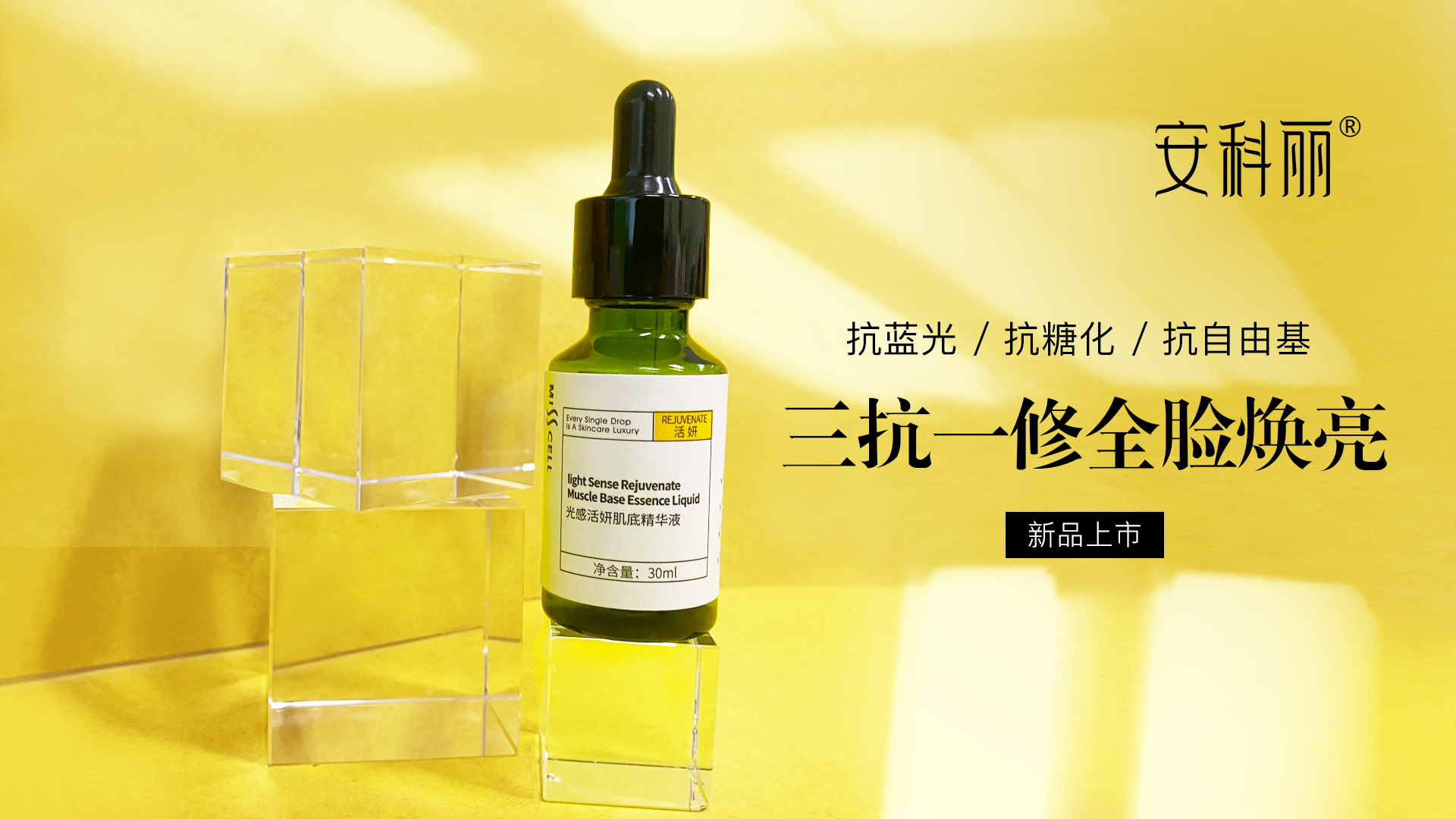 上市药企旗下的品牌安科丽在抗蓝光市场还不是盆满钵满的时候,用一款兼具抗蓝光和抗糖化的精华冲击新兴市场,该产品目前已经在安科丽旗舰店进行预售,产品也会在7月正式面市。