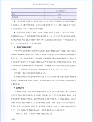 经检测,紫石的法向发射率为0.88,高于国家标准,具有较强的辐射远红外线能力;它的表面磁感应强度为0.5mT,能将水的活性激活,将水分解为溶解性高的小分子水,更易被人体吸收。通过紫石煮过的饮用水是具有能量的小分子团水,活性强、渗透力强、代谢力强、净化力强,呈弱碱性,含有适量的氧,富含多种人体必需的矿物质及微量元素。