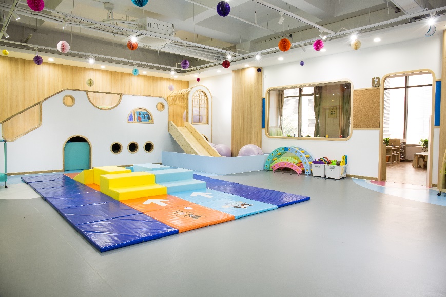 KASCA的托婴班为了满足宝宝日常的不同生活需求,进行了细致的分区,如大运动活动区,喂食区、睡眠区、教学区,洗浴台等。