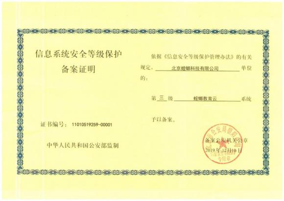 此外,螳螂科技在产品打造之初便以独有的数据加密算法来保护客户的数据安全,通过完善的授权与认证机制、层层权限分级来全面保障用户数据安全,致力于为教培机构提供安全无虞的贴心服务。2019年螳螂科技还成功申请了“等保三级”证明,这也是权威机构对螳螂科技旗下“螳螂教育云“产品在国内同行业的信息安全领先地位的认可。