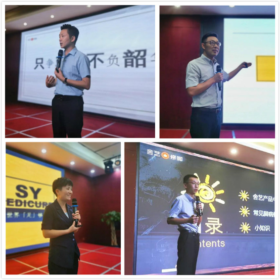 大会伊始,舍艺修脚创始人万正元先生发表了慷慨激昂的讲话,他肯定了全员积极向上、认真踏实的工作态度,对行业现状、未来趋势进行了解读,并明确了接下来的工作目标,对各部门工作进行了部署。