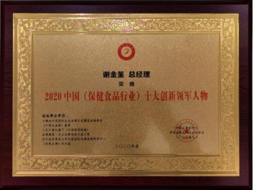 全国工商联原副主席王治国总经理 谢金鉴 荣获“2020中国(保健食品行业)十大创新领军人物”
