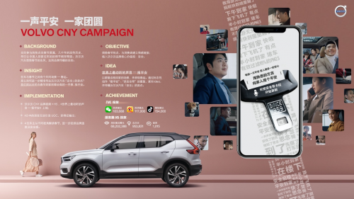 春节,传承几千年的传统文化,中国人回家过年的情节根深蒂固,沃尔沃借由春节,将守护生命安全的核心理念 扎根在人们心中, 在“ 新年快乐 ”之前,归乡路遥的遊子们,用一声声的“ 报平安“,以群像启程回家的场景,来表现春运。通过标志性动作“报平安”、“系安全带”的重复,与消费者建立情感链接,整个传播过程,以高“可读性”的温情叙述,保证了产品的多次曝光,强化了「沃尔沃=安全」的品牌资产,体现了品牌的社会责任感,做到了少有的兼顾品牌与产品的不同层面的传播。