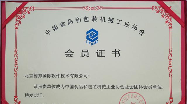 智邦国际成功加入中国食品和包装机械工业协会