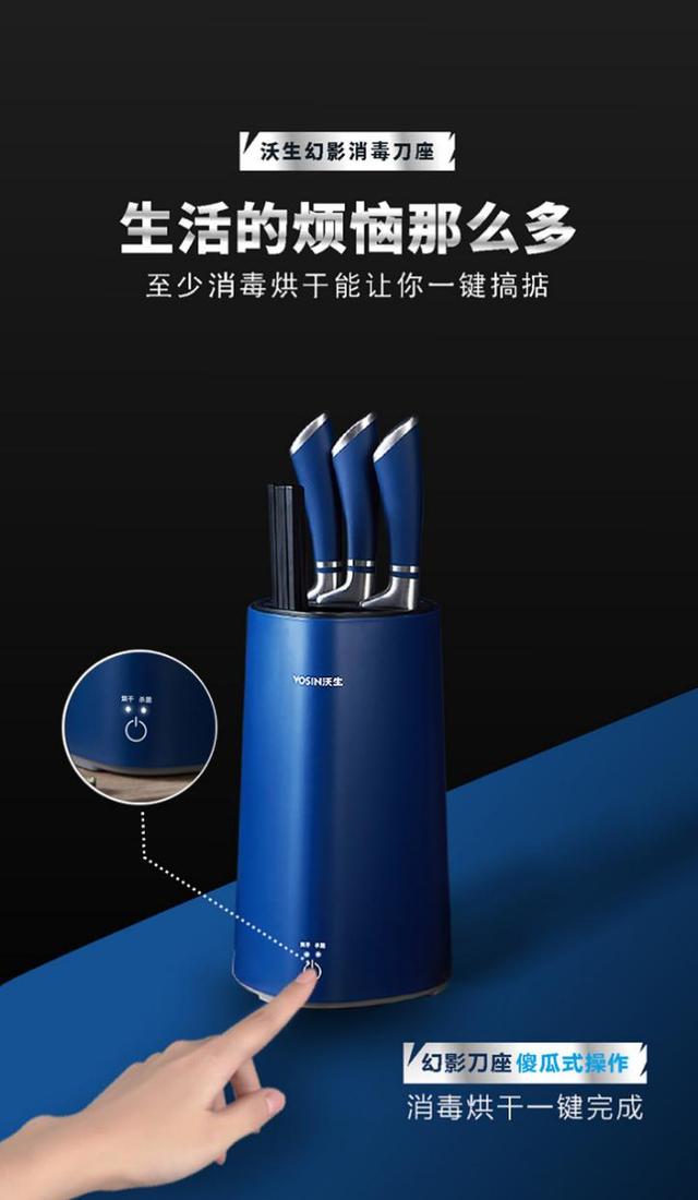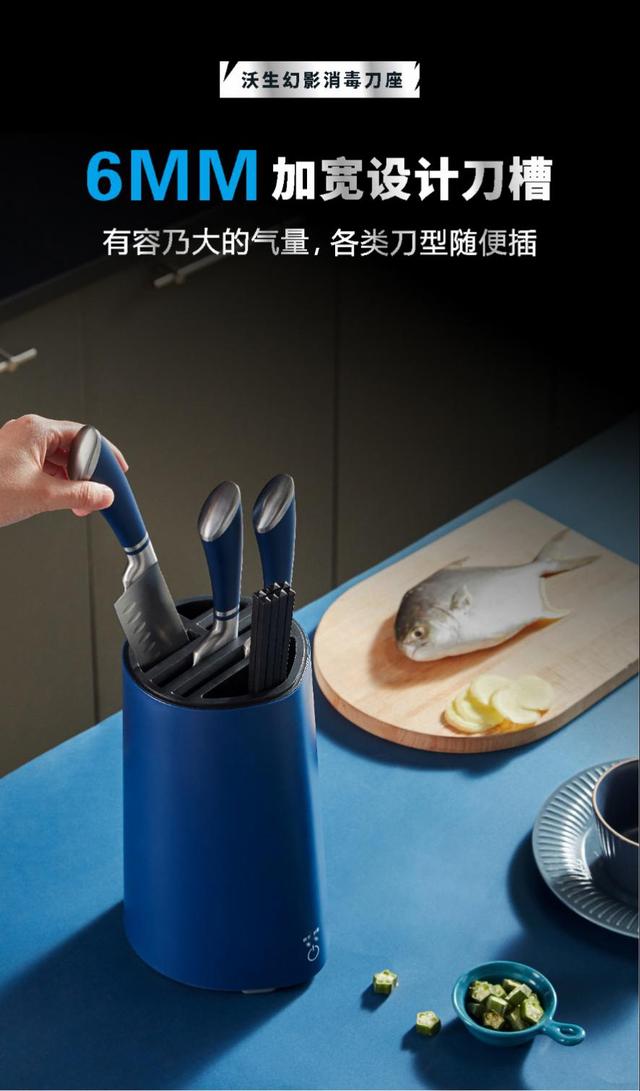 另外,沃生还贴心地在刀架上设计了6毫米超宽刀槽,哪怕你选用了其他品牌的刀具,也能轻松插入,完成消毒烘干作业。而且,刀架上多余的位置,也足够放上约十双筷子,刀具消毒的同时也能为筷子等厨具消毒,一举多得。