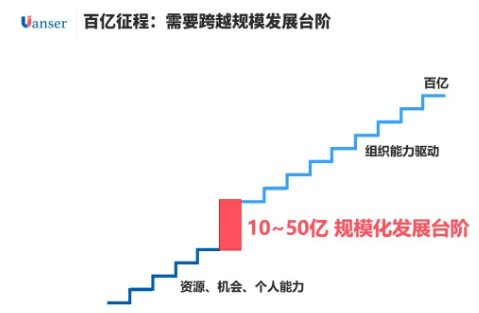 本网11月19日讯 营收达到“百亿”是很多企业努力的“小”目标。原色咨询也认为,虽然不同行业的企业规模和运营模式不尽相同,但从市场地位、员工发展机会、企业抗风险能力等各方面来讲,企业制定“百亿”规模的目标,成为细分赛道的龙头,是非常合理且必要的。虽然很多企业用较短的时间,快速做成了十亿甚至几十亿规模,但是成长为百亿级企业并不是沿着固有的路径努力就一定能够实现的。例如我们专注于服务的流通行业,有着很多几十亿规模的企业。然而这其中有很多优秀的企业会长期卡在同一个规模水平,长年无法突破,即便上市后也无法实现二次增长。十亿到五十亿规模的跨度,好像是一个难以翻越的台阶,阻挡了许多企业走向百亿的步伐。