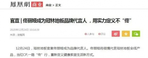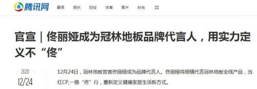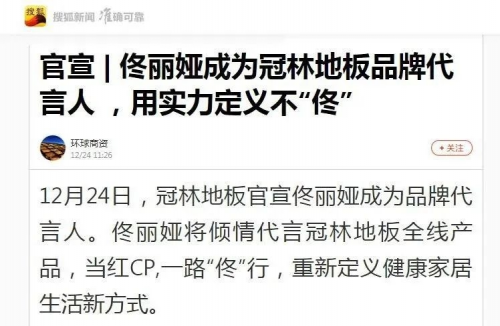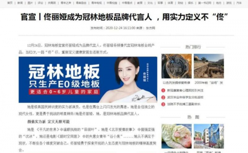 导语:轰动盛事、盛况空前,12月24日冠林地板官宣佟丽娅成为品牌代言人,受到各界媒体的广泛关注,也为冠林地板火爆全行业点燃了导火索,令其受关注度持续爆棚。
