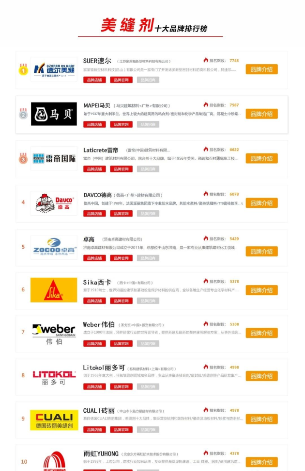 在2020年美缝剂十大品牌中,德国速尔美缝卫冕排行榜第一,作为家装历史发展重要的文化印记,装饰装潢是一个古老的话题,中国源远流长的家装历史,也使得美缝剂成为风格的文化符号。然而,悠久的历史却并未减淡它的光环,一代代学者不遗余力的开拓创新,使得这个古老的话题进发出日新月异的活力。美缝剂,是"细节的光芒"。