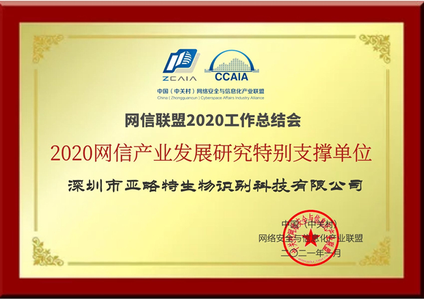 2021年1月29日,中国(中关村)网络安全与信息化产业联盟组织召开网信联盟2020工作总结会,会上举行 “2020网信产业发展研究特别支撑单位”授牌仪式。亚略特入选并参会,向与会领导专家汇报了亚略特在人工智能与生物识别领域的最新创新进展,共同探讨了新时代网络安全和信息化产业发展。