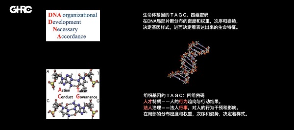 DNA片断的专业解释是,A-T、C-G四种碱基匹配成两对,以特定的数量和姿势排列成一个片段,一个基因往往就是一个特定的片段。企业组织里也存在A-T、C-G,它们不同的组合,不同的样式,构成了组织基因。我们经常会有这种感觉:一个人一开口,我们就知道他是来自国企、外企、事业单位、还是学校;或者看一个场景,就知道这是跨国公司的场景还是IT行业的场景。这其实是组织基因决定了组织表现。