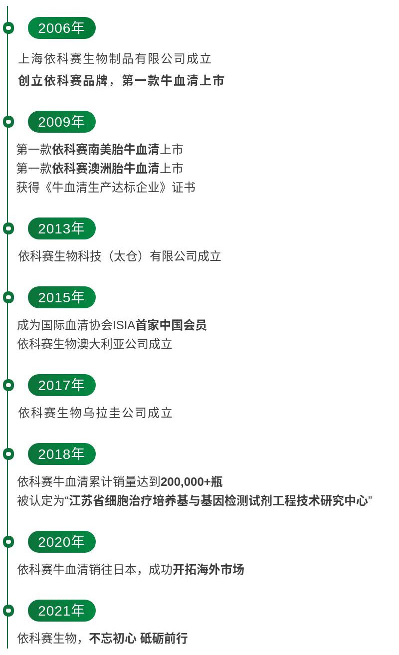 依科赛生物作为中国第一家胎牛血清民族品牌,从2006年第一款牛血清上市至今,凭借过硬的产品品质,以其“正宗血源、正规进口”的合法进口安全性,深受客户的喜爱,助力和见证了生命科学产业的一次又一次的突破和发展!