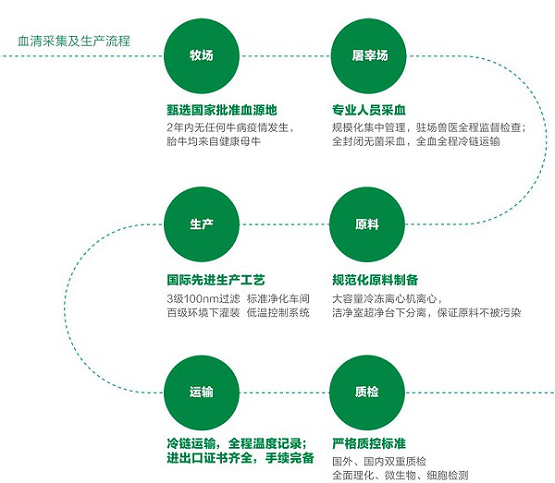 血清生产流程按照国际标准,经过多级预过滤和三级0.1μm精过滤,去除生物污染,包括支原体在内的微生物,之后马上在无菌环境下灌装至瓶内,最大限度确保产品的完整性及性能。
