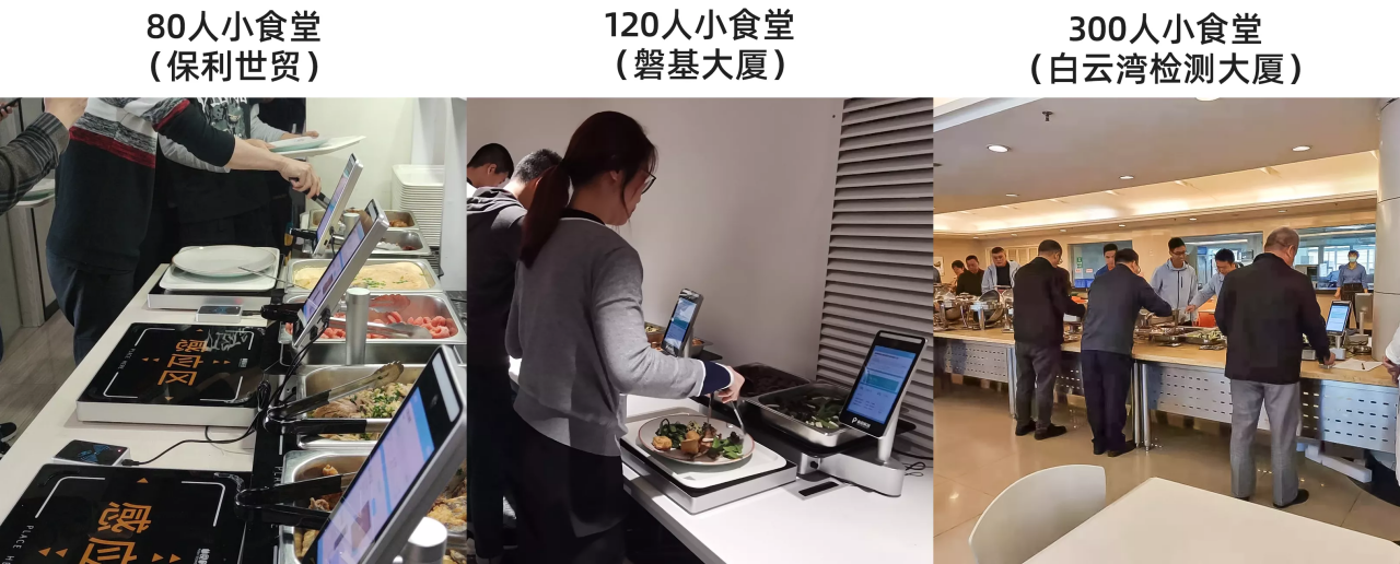 合作企业通过在公司吧台或者休息区,布置朴食智能秤,配餐公司每日将菜品放置在智能秤上,设置对应菜品后,用户即可取餐。通过秤获取菜品信息与重量变化,记录用户取餐的内容,通过绑定微信,在15分钟后自动扣款,整个过程,无人售卖,无人收银,用户根据每道菜的克重收费,精准计价,选择多样,深得用户喜欢。