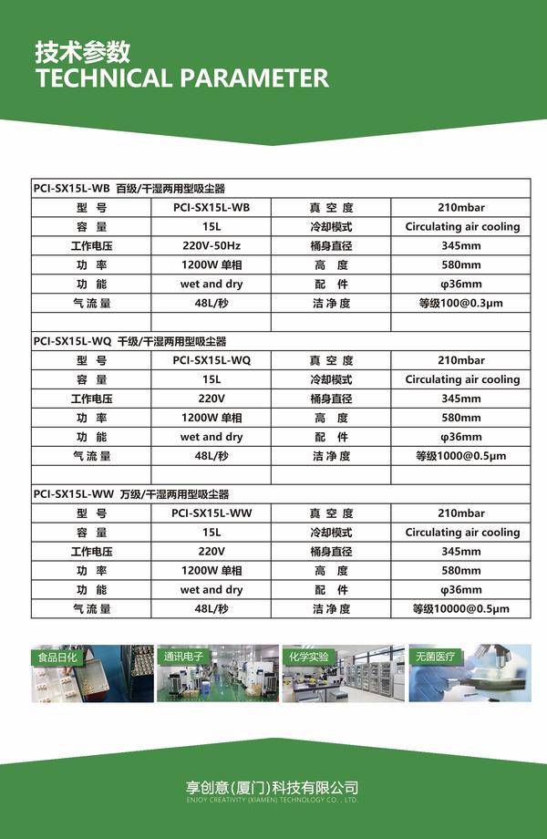 所以,接下来我们以CAROLINE无尘室吸尘器的技术参数作为参考。