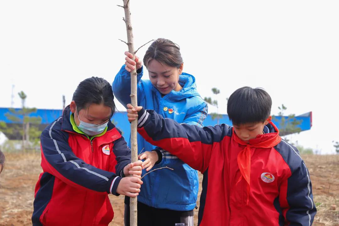 挖坑、插苗、浇水、埋土……眼看着树苗在同学们与志愿者的协作下,排排而立,期待象征着生命力与活力的树苗,在爱与希望中茁壮成长。大手牵小手,蕴含希望的银杏树在春风中昂然挺立。孩子们为栽好的树苗挂上手写的挂牌,许下小小心愿,希望这些树苗茁壮成长。