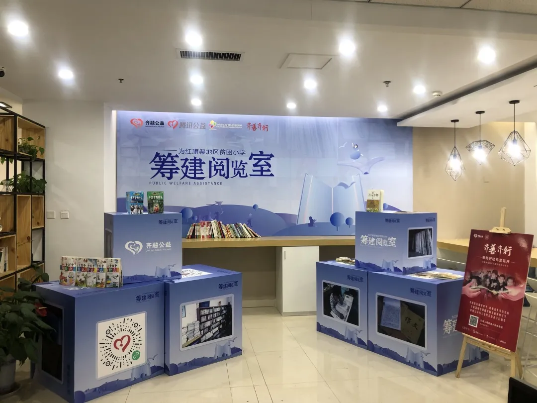 注:下图为齐融公益在筹建阅览室前期,所搭建的公益捐助角。