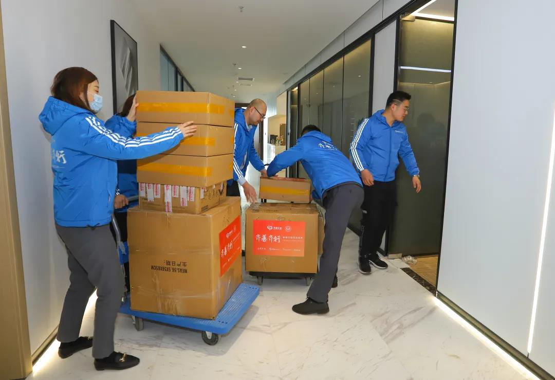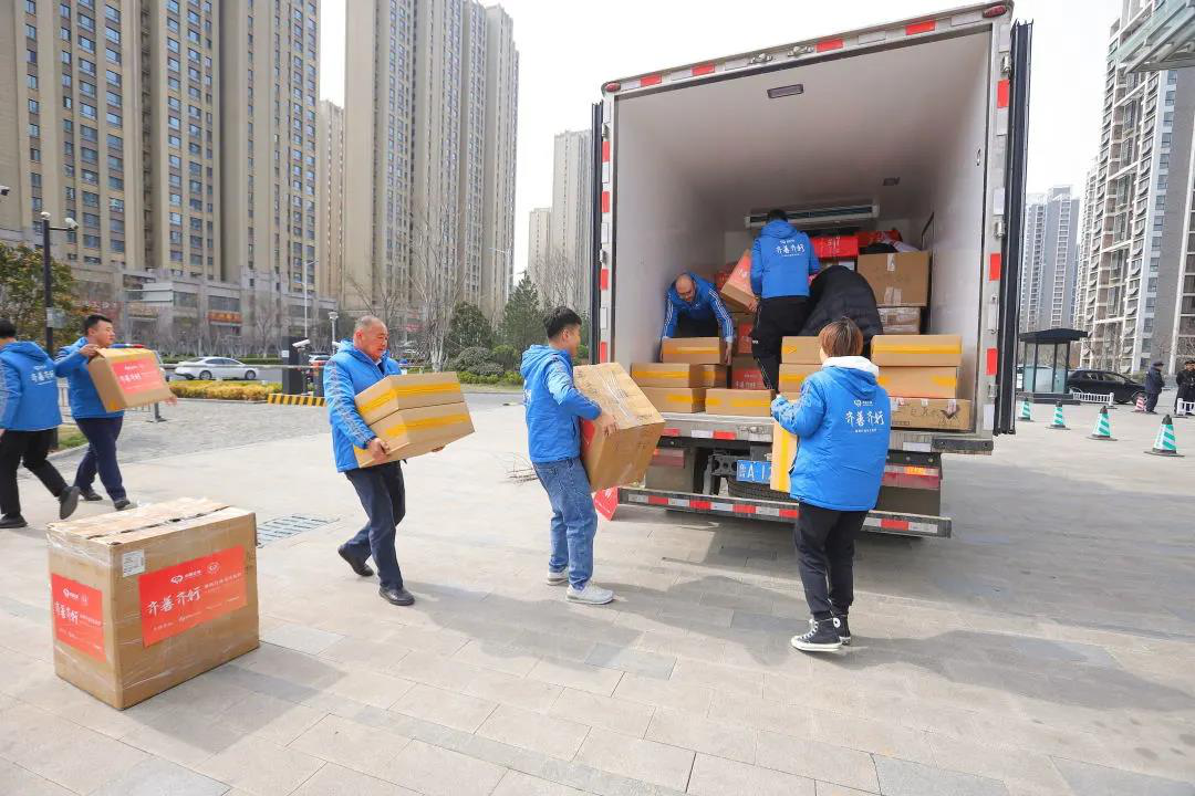 齐融公益的志愿者由乔氏置业党支部书记、党员代表、高管及先进员工组成。出发前,齐融公益志愿者召开会议,共同商讨前行路线,对接并分配工作。3月10日上午,齐融公益志愿者在出发前对所有的捐献物资进行整理装车,大家接力传递,将物资整整齐齐的装入货车。