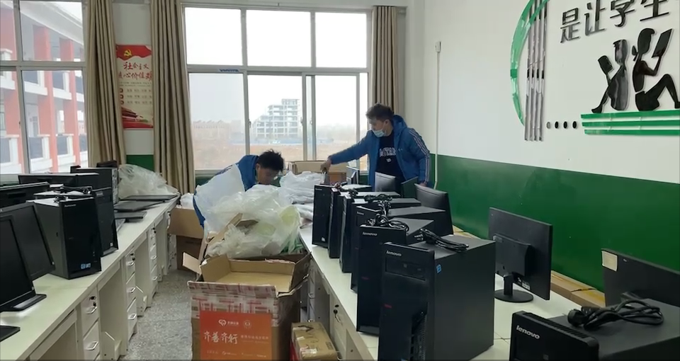 一箱箱书籍,一件件文具,代表着齐融对孩子们的关爱和期待。希望孩子们好好学习,茁壮成长,期待孩子们心存感恩,把爱心继续传递下去。抵达林州市永和希望小学的时候,已经是夜晚,为保证第二天的装机效率,志愿者们马不停蹄的将电脑和配件卸车并搬运至教室。