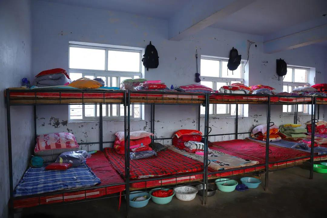 晚饭时间,孩子们每人手捧一个碗,排队等着打饭。这些孩子通常只有一个碗,里面装了米饭和一个菜。由于学校基础设施简陋,学校里没有餐厅,甚至没有吃饭的桌椅,孩子们只能在校园里捧着碗站着吃饭,或者是坐在地上吃,尽管条件艰苦,孩子们还是吃的津津有味。