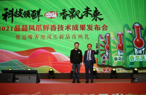会议上发布了凤爪行业年度大事件——以“科技领鲜·香飘未来”为主题的2021品品凤爪鲜香技术成果发布会暨逗嘴香泡凤爪新品首映礼(以下简称“发布会”),揭秘四川品品食品有限公司(以下简称“品品食品”)非辐照专利鲜香技术,发布逗嘴香泡凤爪全新产品,多位大咖现场强力助阵,助力品品食品引领中国凤爪行业迈入鲜香时代!