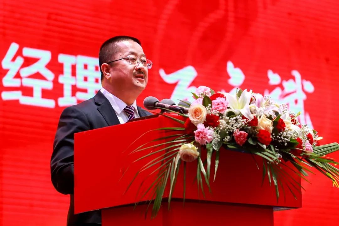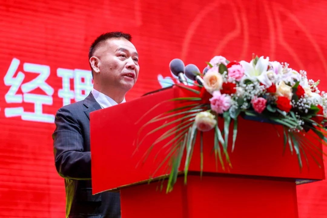 公司总经理冯学平先生致辞,他向在百忙之中抽空来公司参加全国经销商答谢会暨新品发布会的家人们表示热烈的欢迎和由衷的感谢!