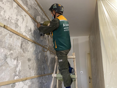 (益鸟维修团队自有工人标准化施工现场)