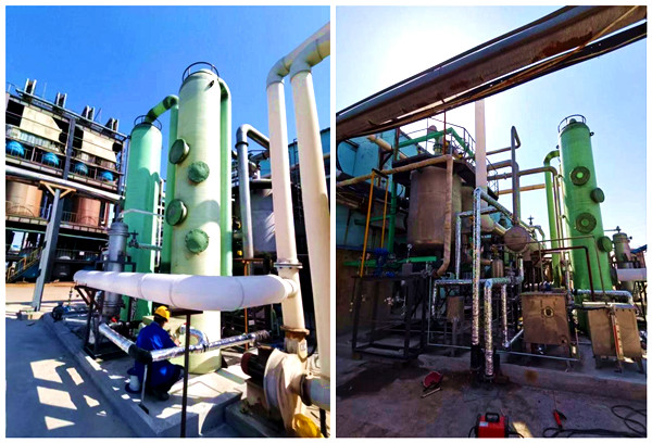 4月中下旬,由山东格瑞德集团环保工程一公司总承包的化工活性炭吸附蒸汽脱附甲苯冷凝回收项目顺利安装完成,现已进入调试运行阶段。