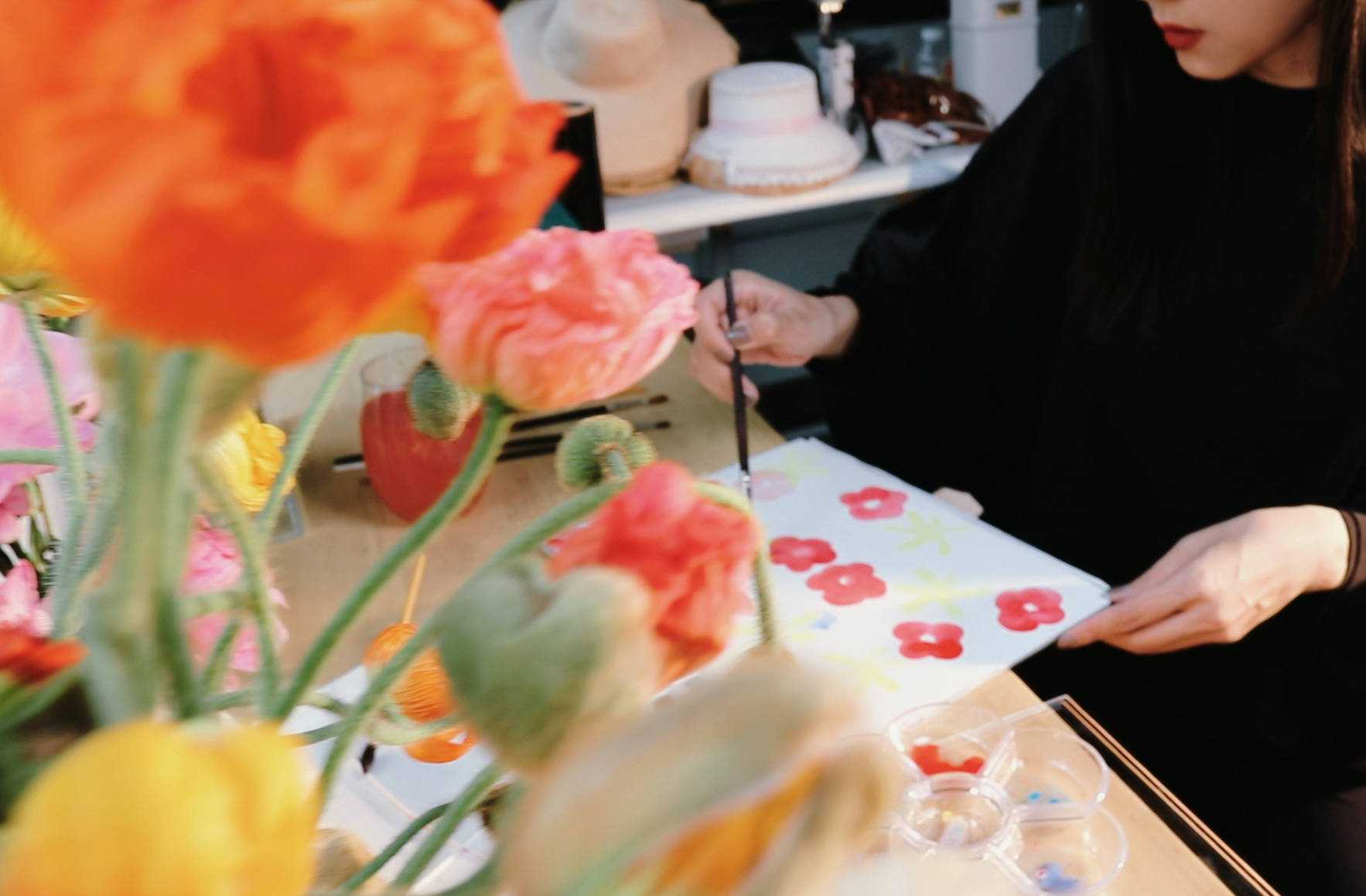 春日的繁花浸透了浓烈的色彩,迸发出旺盛的生命活力,设计师以画笔颜料将其留存,一笔一笔细细勾勒;经过翻印,印染,织造,制板,裁剪,缝纫一步一步诞生出专属于这个春天的系列。
