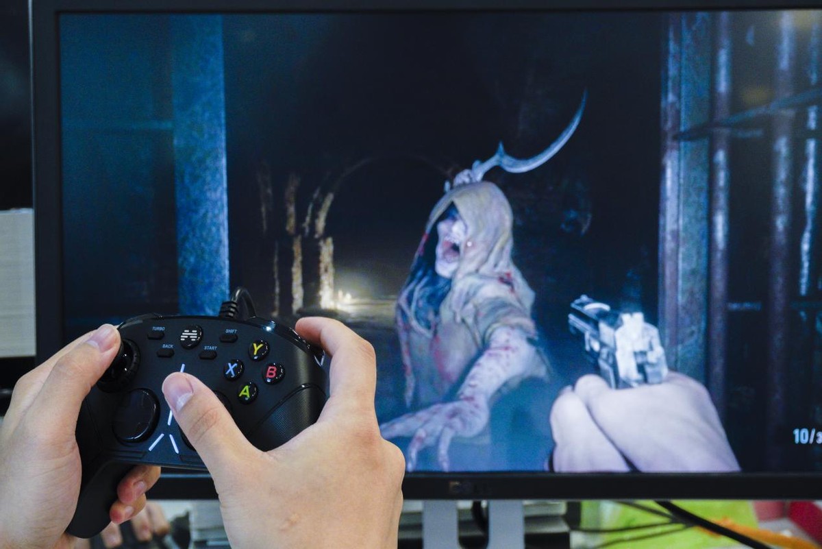 《生化危机8》首周发售就已经坐稳steam销量榜首位,并且在玩家中也得到了优秀的口碑和如潮好评,唯一的不足之处也就是经典的第一人称视角晕3D;因此小编特别推荐阿修罗3游戏手柄,这确实是对于第一人称晕3D、但又想完美体验这一恐怖游戏大作的玩家们的福音。