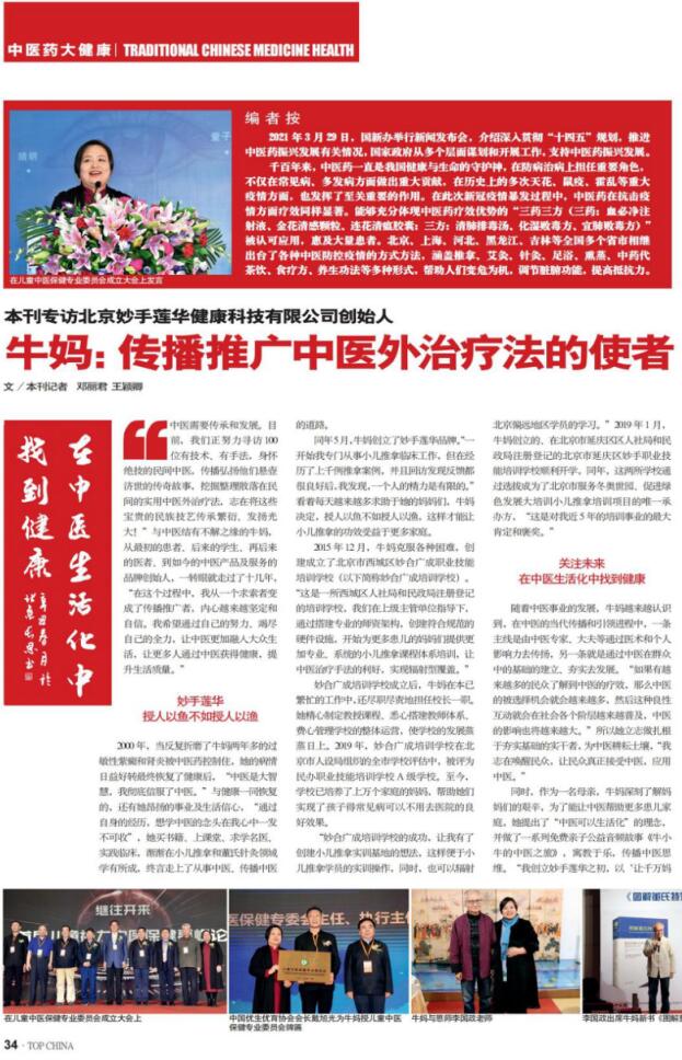 牛妈数年如一日的推广传播中医文化,引起了《中华英才》杂志编辑的注意,2021年5月,牛妈接受了《中华英才》杂志的采访。