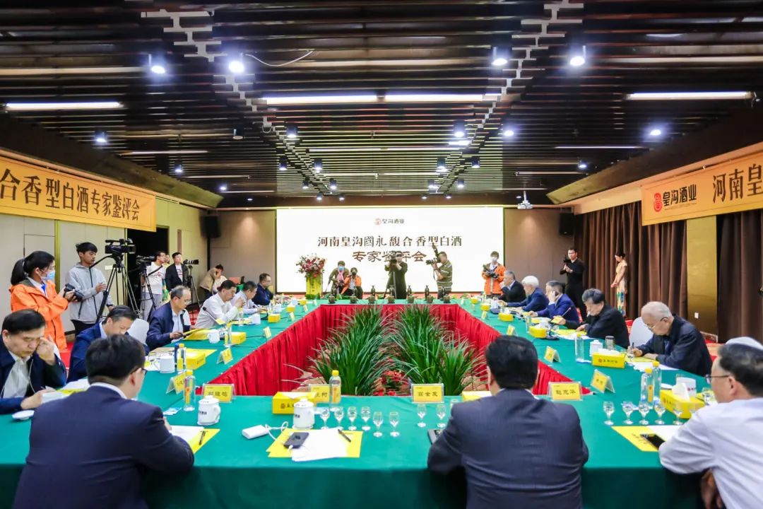 国家白酒标准化技术委员会委员钟杰现场鉴评皇沟馥合香,微黄清亮透明,香气馥合幽雅,焦香陈香舒适,酒体醇厚圆润、甘润绵长、诸香协调、空杯留香持久,是有本品独特典型风格。