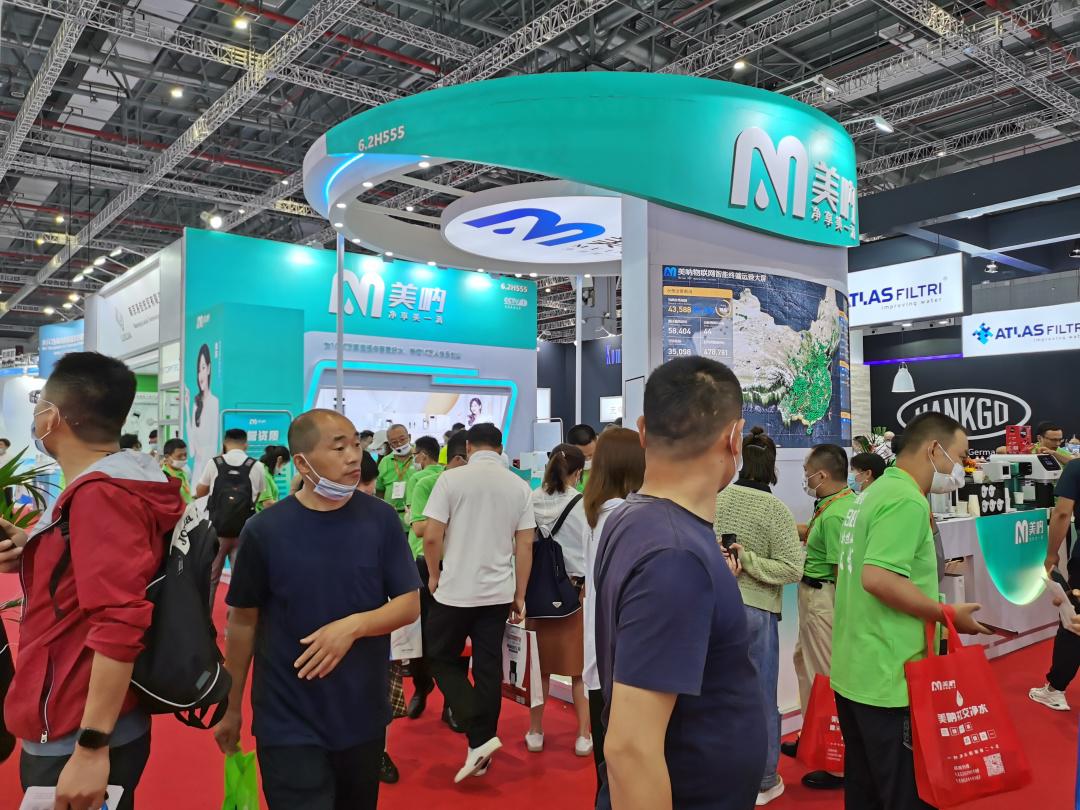 不可否认,疫情的反复的确影响着整个展会参观量。但美呐展位依然人潮翻涌,人气爆棚。大家惊叹于美呐领先的物联网水质大数据,感慨于美呐小伙伴超强的工作热情,对美呐的系列产品智能、新潮、实用又普惠的概念赞不绝口。更有许多寻觅商机者当机立断,现场加盟,做美呐普惠好水事业的推广大使。