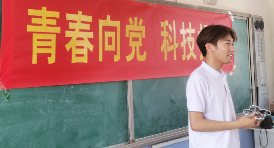 (幽默风趣的课堂——大学生向小朋友们展示和讲解自己研发的无人机)