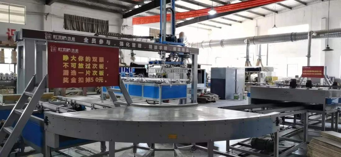 红木枋在自主设备上也拥有一套自动化生产体系,由热压机自动进出板系统、无人值守砂光全自动系统、全自动锯板堆码养生系统、全自动开槽装箱堆码系统组成。