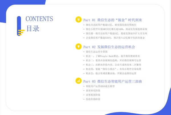 易观数科联合微信生态裂变头部服务厂商零一裂变、创意设计领域头部企业创客贴,结合服务过众多行业头部客户的经验、及国内外前沿的智能用户运营(CEM)理念、以及最新微信公开课PRO的演讲内容和市场公开数据,推出《微信私域运营实战指南》。