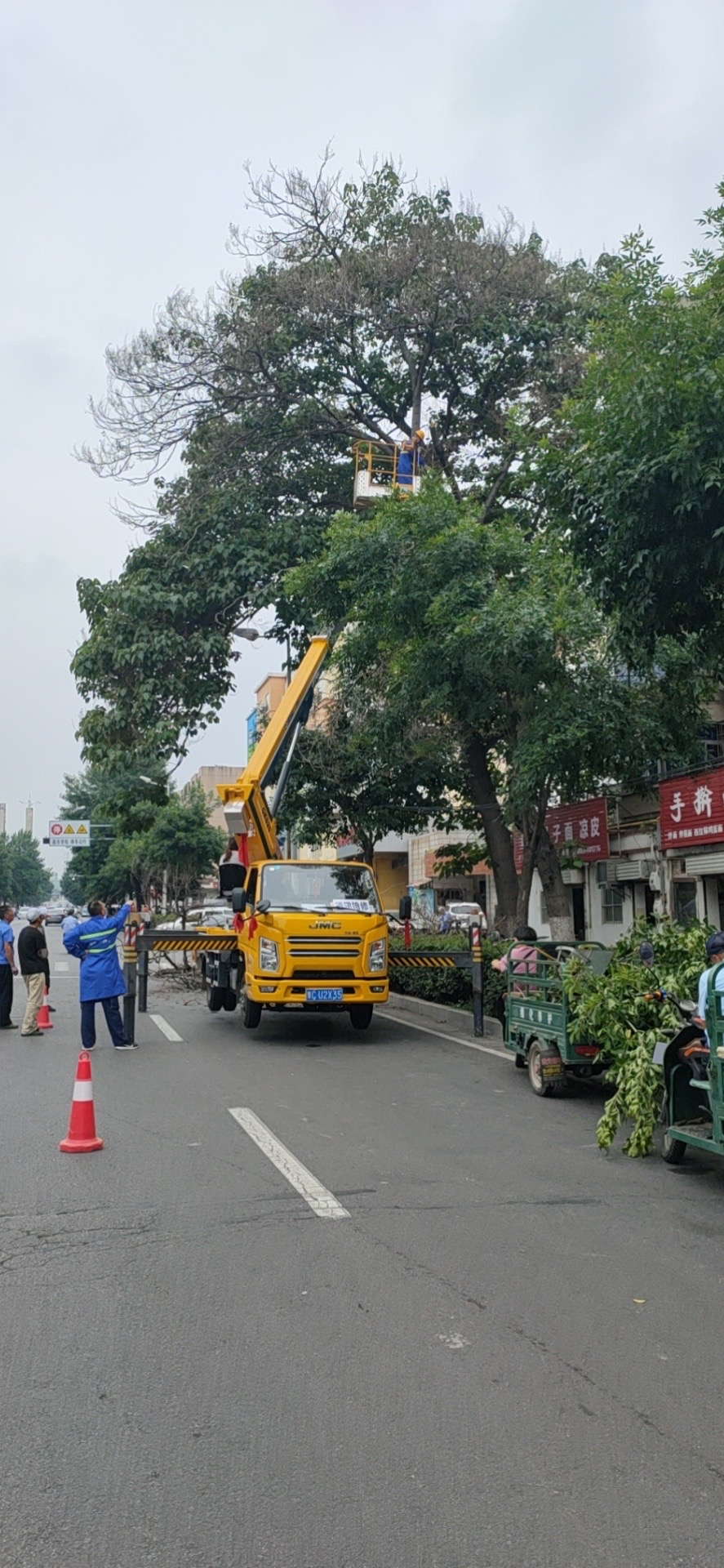 原国营632厂家属院1989年建成,厂区于2005年破产。小区南侧临街的这两颗梧桐树自小区建设初期栽种,见证了南昌路高架的通车、周山西路更名乐山路的时代变迁,不仅是一个三线企业的印记,更是城市发展的“见证者”。但由于年代久远,整体树高近20米,树冠大面积枯枝,不仅遮光还存在枯枝掉落的安全隐患。按照以往流程,此事项涉及城管、物业、绿化等多个部门,存在诸多协调、联动问题。推行“路长制”后,社区不仅多了发现问题的“眼睛”,还长出了“三头六臂”。党员志愿者在所负责路段内开展讲文明、讲礼貌、讲秩序的宣传教育,督促责任路段内沿街业主落实“门前三包”管理责任制,参与责任路段内各类问题的整治活动。发现问题,一张现场照片、一段描述文字通过手机上的“路长制”APP直接将这一问题上报给总路长,通过系统转交相关职能部门,问题流转时间更短、处置更快,使得问题很快得到解决。